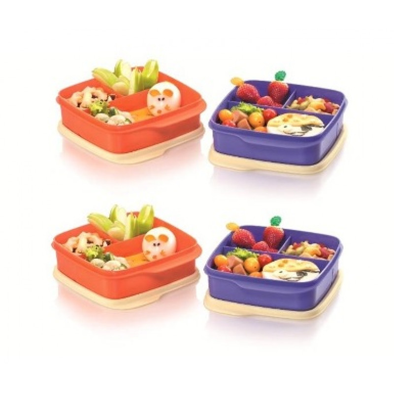 Благодаря разделителям имеется 3 отделения: 330 мл - для основного блюда/гарнира/салата; 110 мл и 110 мл для фруктов/орешков/печенья.